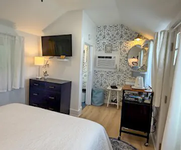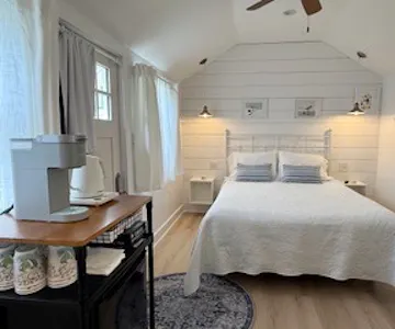 Once a boatbuilder’s workshop, the Marginal Way Bungalow has been beautifully restored as an intimate coastal retreat in the heart of Ogunquit. Thoughtfully designed, this private studio cottage features a queen bed, private bath with shower, mini-fridge/freezer, WiFi, cable TV, air conditioning, coffee service and blackout drapery. Relax in the cozy Adirondack chairs out, a perfect spot to unwind and enjoy the fresh air.